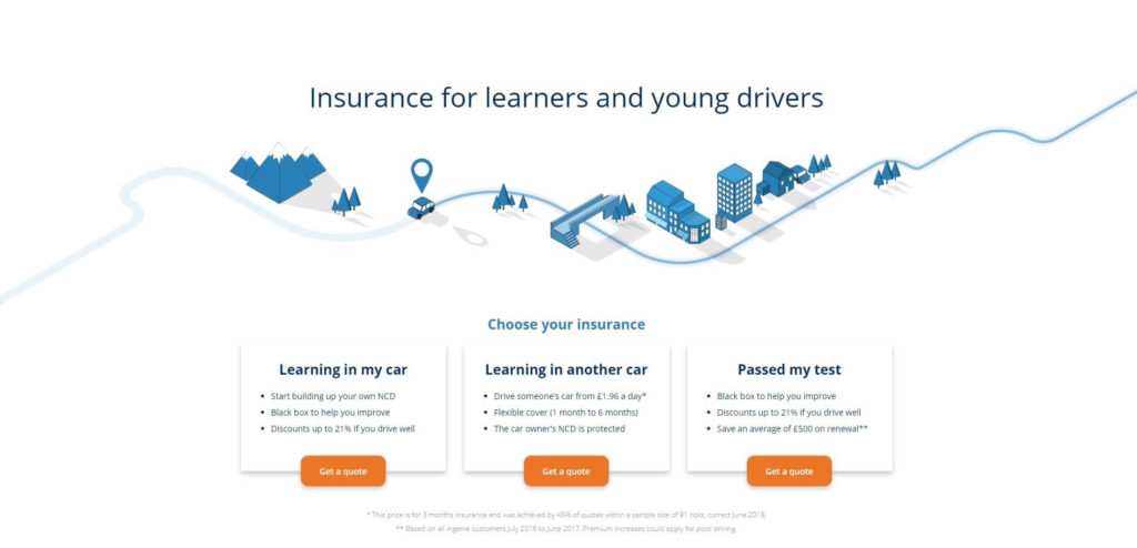 ingenie provides black box car insurance for drivers aged 17-25, offering savings of around £400 and the ability to earn an extra 21% off over the course of the policy for good driving. Learners can also buy insurance with ingenie for learning in their own car or for learning in another person’s car.